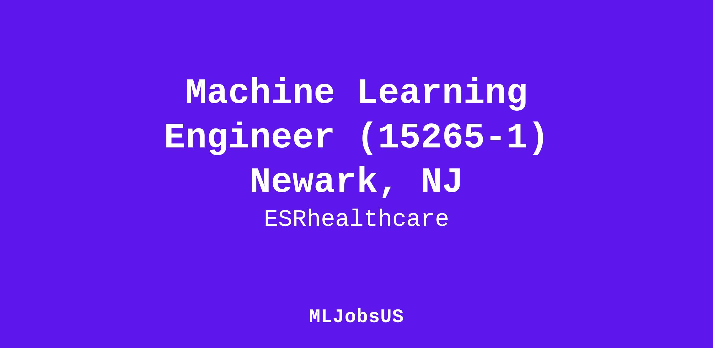 Machine Learning Engineer (15265-1) Newark, NJ